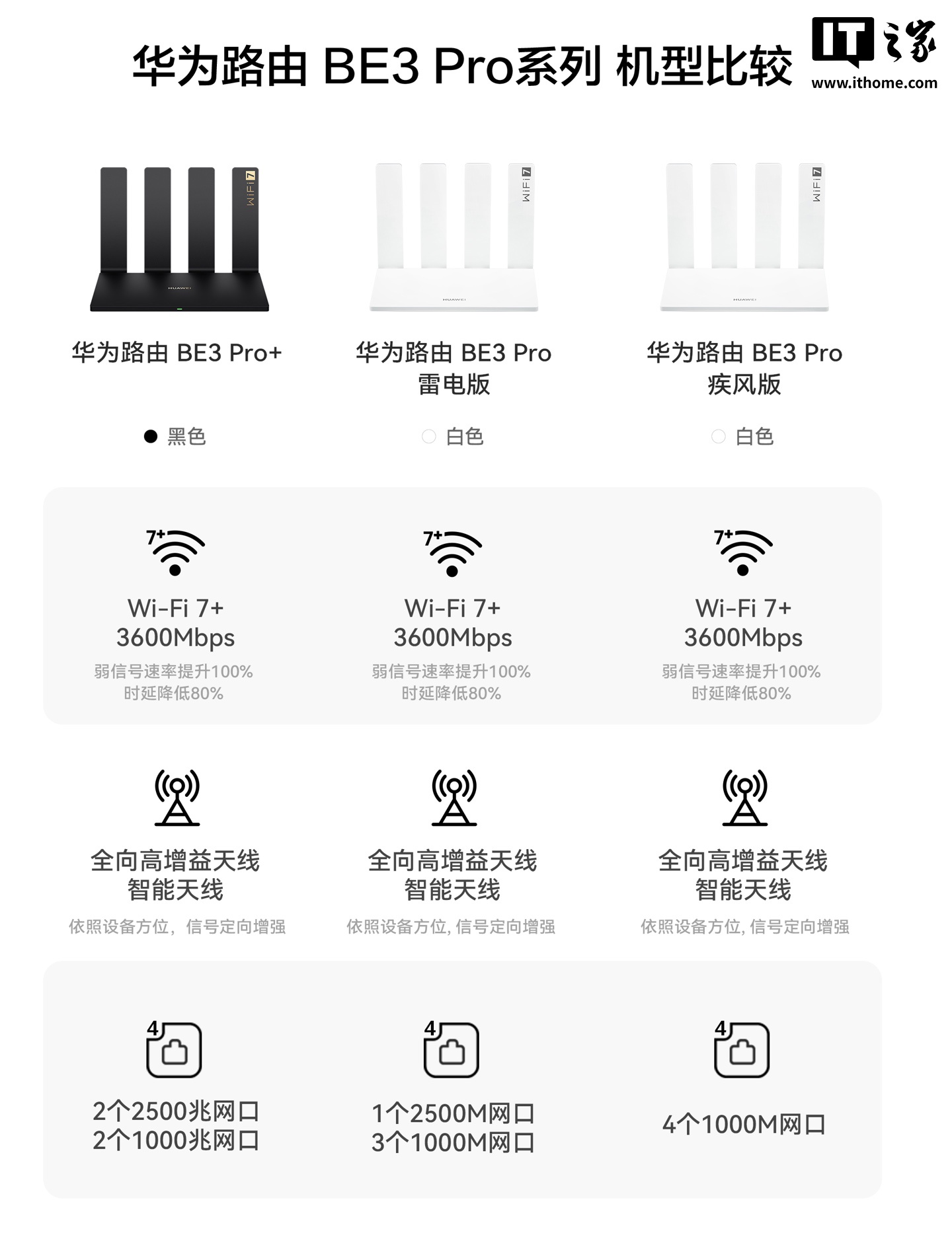 IT之家 9 月 5 日消息,华为现已在其商城上架“华为路由 BE3 Pro+”,其主打“Wi-Fi 7+、智能高增益天线、儿童上网保护”,目前处于预售阶段,标准价 429 元,首发价 329 元。