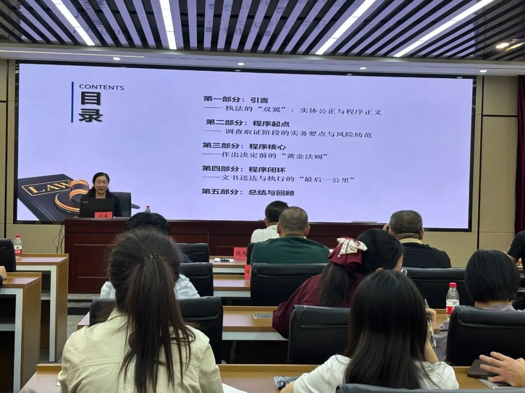 培训班紧扣行政执法“规范化、精准化”需求,聚焦行政执法实务的重点难点堵点,邀请金平区人民法院行政审判庭副庭长杨捷和汕头市委法律顾问、市政府法律咨询专家委员会委员、市人力资源社会保障社局法律顾问刘萍律师两位具有深厚法治理论功底和丰富实务经验的专家联袂授课。专家们分别以《社会保障行政案件实务解析》《人社执法程序实务操作与常见问题解析》为题,从近年来人社系统多发的行政争议案件切入,重点针对劳动关系确认、举证责任分担、调查取证方法和监察执法程序等问题予以分析讲解,针对性与实用性极强。