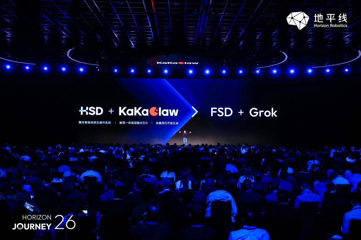 4月22日,地平线在北京举办年度产品技术发布会,正式推出中国首款舱驾融合整车智能体芯片 “星空”、中国首个整车智能体操作系统“KaKaClaw 咖咖虾”,以及全场景辅助驾驶系统 HSD V1.6。三大核心产品落地,标志着地平线完成芯片、操作系统、智驾、智舱全链路布局,成为国内少数具备整车智能全品类技术能力的企业,正式开启物理 AI 时代 “整车智能体” 产业新篇章。
