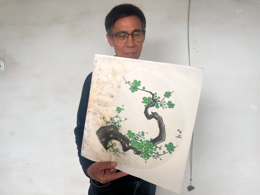 72岁的李武在家门口摩挲着女儿李敏留下的画作。因为最近的阴雨天气,画作已布满霉菌,不到两年时间,妻子因病离世,独生女又遭其丈夫杀害,如今只剩他和外孙相依为命。